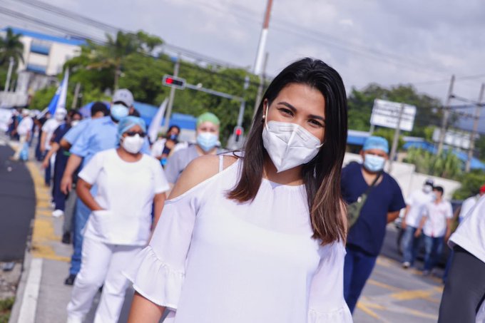 También este día la Candidata a Diputada Katheryn Alexia Rivas por Nuevas Ideas, también se hizo presente para Apoyar a los STISSS (Sindicato de Trabajadores del Seguro Social) y se sume al movimiento Social “ No Vamos a Permitir la Privatización del ISSS “