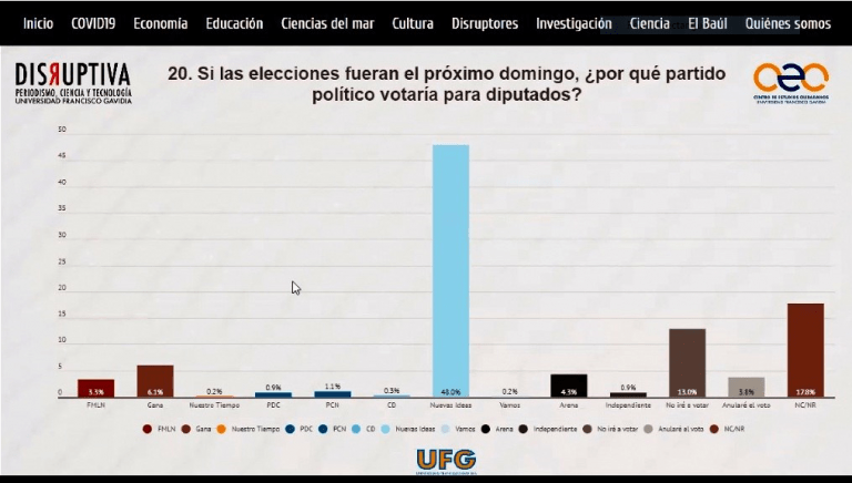 En una encuesta realidad por la Universidad Francisco Gavidia aseguro que los partidos políticos Nuevas Ideas y Gana tendrán 70 Diputados en coalición haciendo caer en números a los contrincantes tanto ARENA como FMLN que gobernaron 30 años juntos.