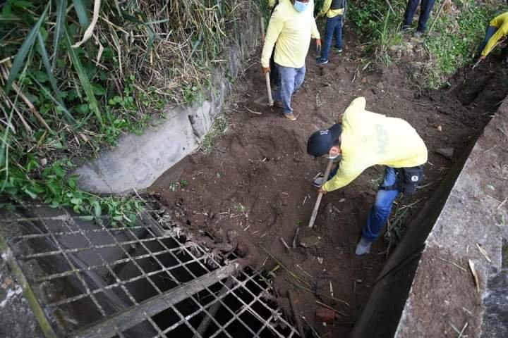 También la zona hubo una obstrucción de la pileta recolectora de aguas que descienden del cerro San Jacinto y lluvias, poniendo en peligro a los residentes de la zona, también Nosotros hemos llevado equipo para realizar obras de mitigación y riesgo para asegurar el patrimonio de sus familias.