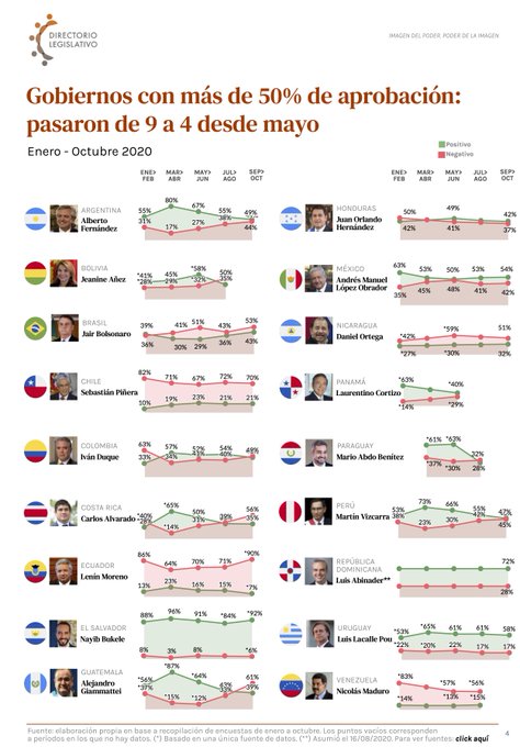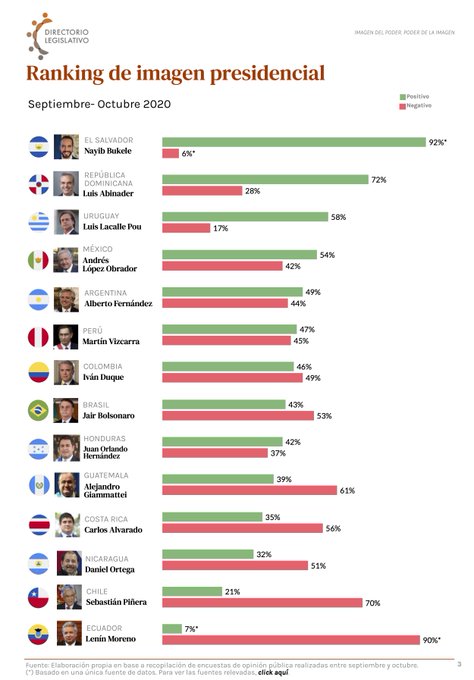 En la ultima encuesta realizada por el Directorio Legislativo afirma los numeros de la encuesta , donde se percibe la ceptacion a nivel Latino America la gestion del Presidente Nayib Bukele y por todo el trabajo que a realizado ,Los datos confirman que el fortalecimiento de la imagen de los presidentes de Latam que fue analizada al inicio de la pandemia fue un fenómeno momentáneo el que se vivio tras conocer la encuesta.