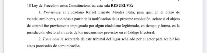 ademas ocurre entonces quees un interes general , como esta establecido en el articulo 183 de la Constitucion, puede ejercerlo calquier ciudadano, sin que se exija a su persona o a otro que se le haya agotado los recursos o la instancia del Tribunal Supremo Electoral.