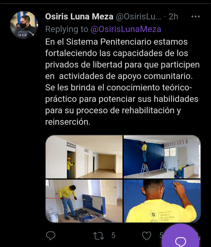 Ante esto el ViceMinistro de Justicia y Centros Penales Osiris Luna Meza informa que Privados de Libertad ayudan a restaurar dichas instalación del Consejo Nacional de la Niñez y de la Adolescencia de El Salvador.