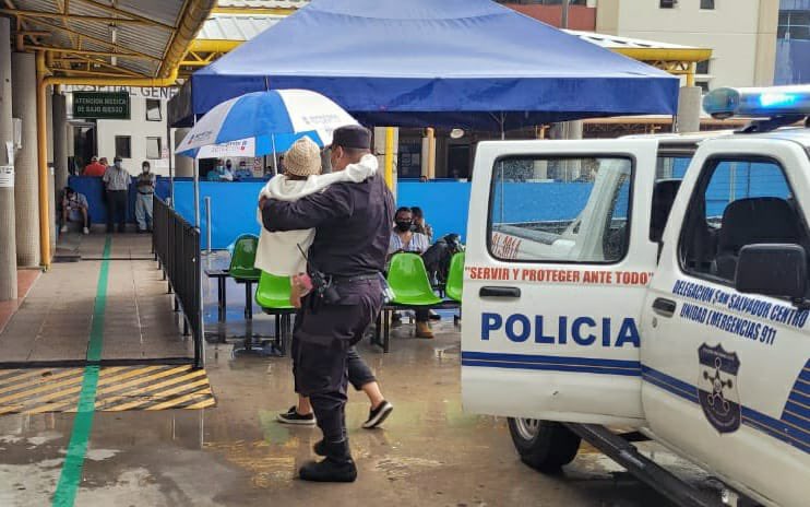 El Salvador 🇸🇻: Policía brinda ayuda a persona de la tercera edad.